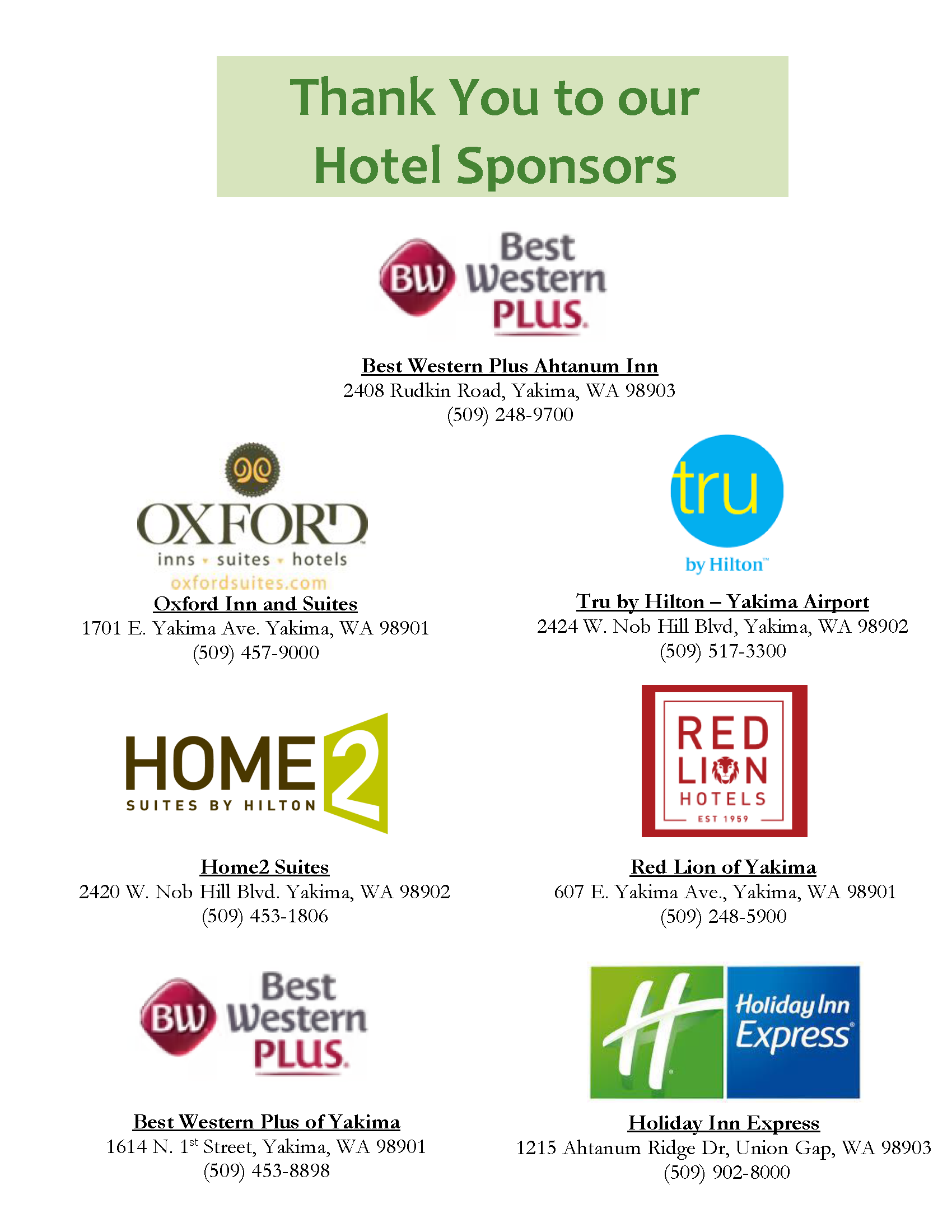 These fine establishments that support the Festival by providing lodging for our judges. Please support them too!